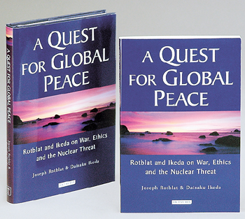 【영국】이케다(池田) SGI회장과 故 로트블라트 박사(노벨평화상 수상자, 퍼그워시회의 명예회장)의 영어판 대담집이 영국 I.B.토리우스사에서 발간했다. 영어판 제목은 ‘지구평화를 위한 탐구 - 로트블라트 박사와 이케다 SGI회장이 말하는 전쟁, 윤리 그리고 핵의 위협’이다.