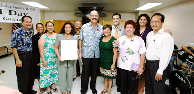 미국SGI 괌회관에서 레스피치오 의원이 괌 준주의회 ‘현창장’을 현지 SGI대표에게 수여했다.