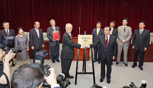 中 국무원 신문판공실 소카大 중앙도서관에 도서 기증