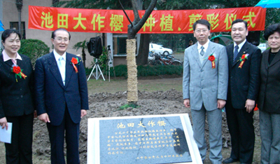 “이케다 선생님의 정열적이고 모범적인 행동과 저우벚나무에 감개무량하도다. 중일국교정상화 35주년의 가절에 즈음해 기념으로 벚나무를 심어 이케다 선생님의 중일우호 공헌을 이에 남기는 바이다.”