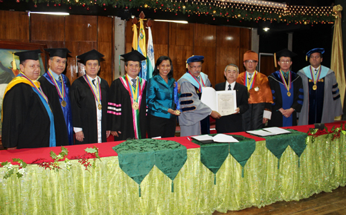 수여식은 대학원 졸업식과 함께 거행되어 산체스 총장과 베네수엘라SGI의 사라스 이사장을 비롯한 각계 관계자들이 참석했다.