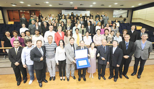 한편, 지난 3일에는 브라질 상파울루시가 상파울루 시내의 브라질이케다문화회관에서 ‘특별경축의회’를 열어 이케다 SGI 회장 부부를 현창했다. 이날 수여식에서는 이케다 SGI 회장 부부를 대리한 하마 브라질SGI 부이사장과 오가와 브라질SGI 부인부장에게 현창장과 기념패를 전달했다.