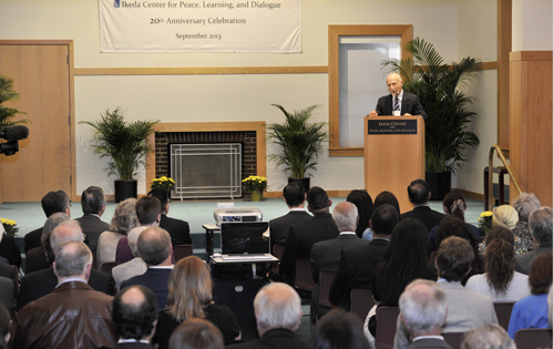 창립자 이케다 SGI 회장은 축하메시지를 보내, 이케다국제대화센터가 문화와 종교 그리고 학문 분야를 초월한 대화의 무대가 되어 새로운 ‘생명 르네상스’의 불멸(不滅)의 광원(光源)이 되기를 바랐다.