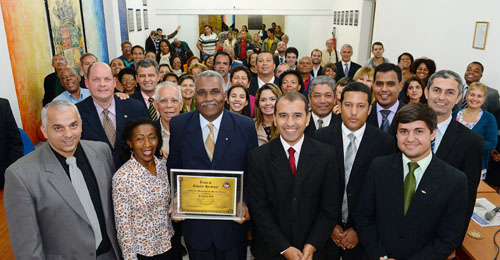 【리우데자네이루】 브라질 리우데자네이루주 이구아바그란데시가 지난 9월 26일 시의회 회의장에서 평화와 문화 그리고 교육을 위한 탁월한 공헌을 기려 이케다(池田) SGI 회장에게 ‘명예시민증’을 수여했다.