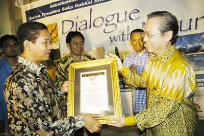 이 기록을 기념해 ‘인도네시아기록박물관(대표 파우루스 팡카)’이 정식으로 개막식에서 페테르 인도네시아SGI 의장에게 ‘인정증(認定證)’을 수여했다.