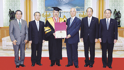 수여식은 지난 6월23일 도쿄 하치오지시 소카대학교 본부동에서 거행해 ‘명예박사’ 학위기가 전해졌다.