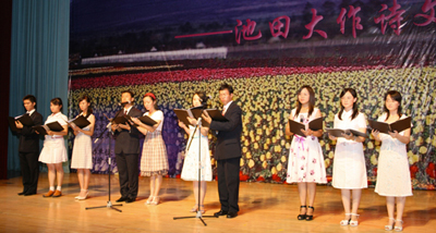한편 베이징대학교 1백주년기념당에서는 지난달 22일 ‘마음의 금의 다리 - 이케다 다이사쿠 시낭독회’가 열려, 소카(創價)대학교 대표가 베이징대학교 학생・교직원과 함께 참석했다. 낭독회에서는 중일 양국 학생이 SGI 회장이 읊은 시 ‘베이징대학교 찬가 - 경애하는 베이징대학교 학생에게 드린다’를 비롯해 SGI 회장의 시가(詩歌), 베이징대학교에서 강의 등 모두 19편을 소개했다. 이 행사는 同대학 학생단체인 중일교류협회와 낭독예술협회가 주최했다. 두 단체는 개최 취지를 “다음 세대를 짊어질 사람으로 이케다 선생님의 지혜와 힘을 헤아려 중일 우호의 확실한 발전과 세계평화 추진에 노력하고자 합니다”라고 썼다.