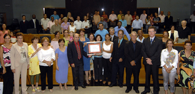 우베를란디아시 시의회의장에서 열린 수여식에는 발의자 페헤이라 시의원이 참석해 “‘미소의 대사’로서 민중 속으로 들어가 평화를 위해 끈기 있게 대화를 넓혀온 가네코 여사의 위대한 업적을 찬탄합니다! 이케다 SGI 회장과 함께 많은 어려움을 극복해온 가네코 여사를 진심으로 찬탄하며 SGI의 모든 여성을 축하합니다.” 하고 말했다.