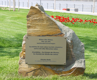 【독일】독일 빙겐시가 벚꽃에 관련해 쓴 이케다 SGI 회장의 시 한 구절을 새겨 시비(詩碑)를 세웠다.