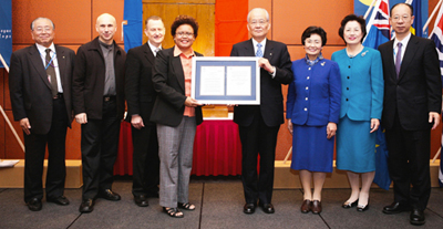 수여식은 오스트레일리아 골드코스트 시내에서 개최한 제1회 오세아니아 총회에서 거행됐다.