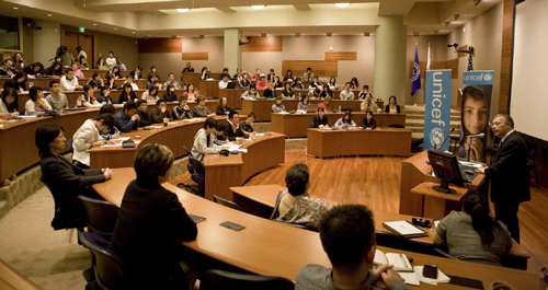 이 강연은 유니세프(유엔아동기금)와 유엔협회가 공동으로 주최했다.