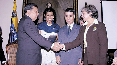 수여식은 지난 7월26일(현지시간) 라라주 정부청사에서 열린 ‘간디・킹・이케다 - 평화건설의 유산’전 개막식에서 거행됐다. 카를로스 카마카로 라라주 치안공안국장은 대리로 참석한 사라스 베네수엘라SGI이사장에게 ‘제1등장’을 전달했다.