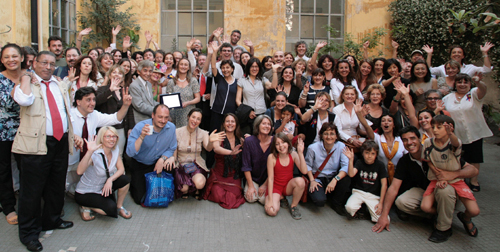 이탈리아 로마 구시가지구가 이케다 SGI 회장에게 현창패를 수여해, 레지나마르게리타초·중학교에서 열린 수여식에서 아르폰시 부구청장(현창패 오른쪽)이 현지 SGI 멤버와 기념촬영을 했다.