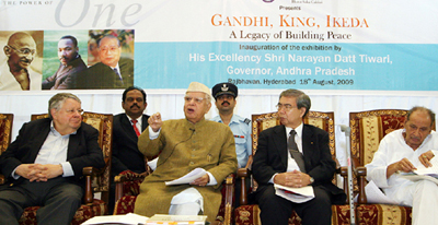 【인도】인도 안드라프라데시주 하이데라바드 주지사 관저에서 ‘간디·킹·이케다-평화건설의 유산’전이 개최됐다.