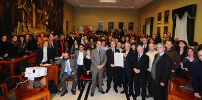 그리고 부스체마 시장이 대리인 가네다 이탈리아SGI 명예이사장에게 명예시민증을 전달하자 큰 박수가 터져 나왔다.
