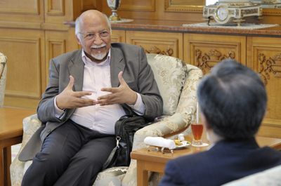 【도쿄】세계 150개국에 취재보도 네트워크를 보유한 국제통신사(IPS, Inter Press Service)의 라메슈 자우라 유럽 총국장이 지난 9월 7일, 도쿄 시나노마치 창가학회 본부를 방문해 하라다(原田) SGI 회장대행과 데라사키 창가학회 국제홍보 국장이 환영했다.