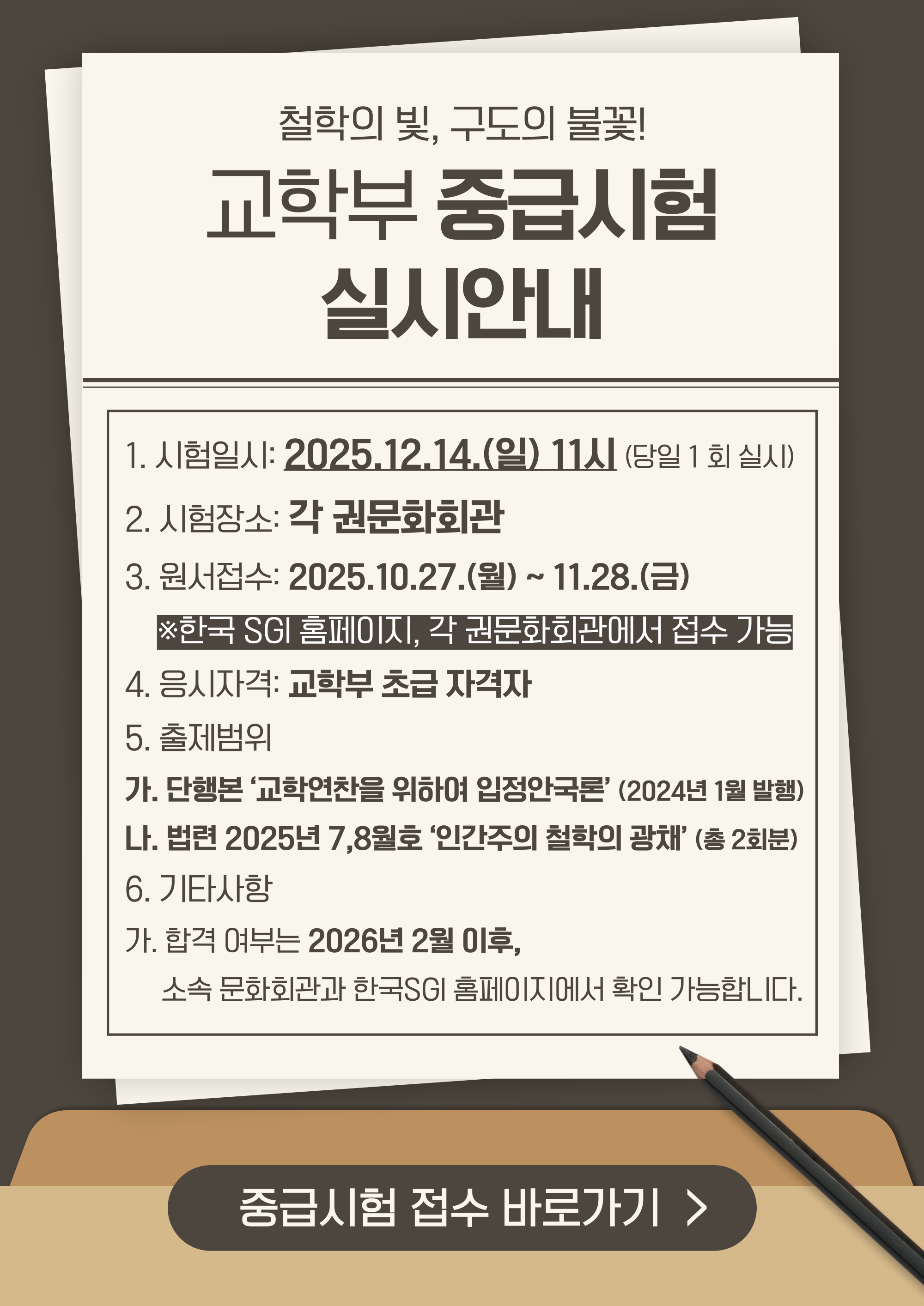 한국SGI는 불법(佛法)의 인간주의를 바탕으로 한 사람 한 사람의 행복한 생활을 추구하고 결국 모든 투쟁은 자신과의 싸움이다. 사회활동도 혹은 역사 정치 경제 발전도 모두 본질적으로 말하자면 긍정적 세력과 부정적 세력간의 대결이다.